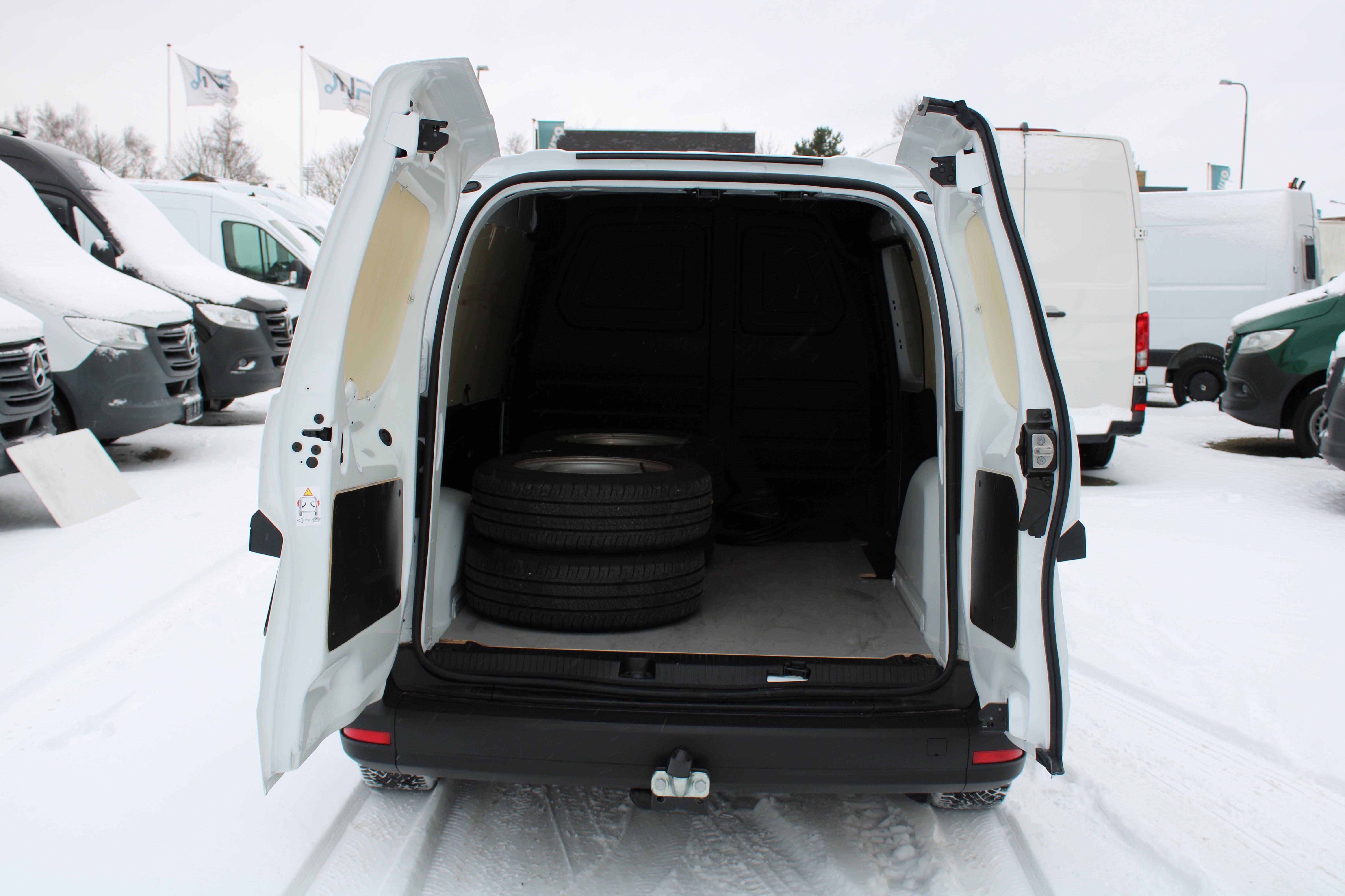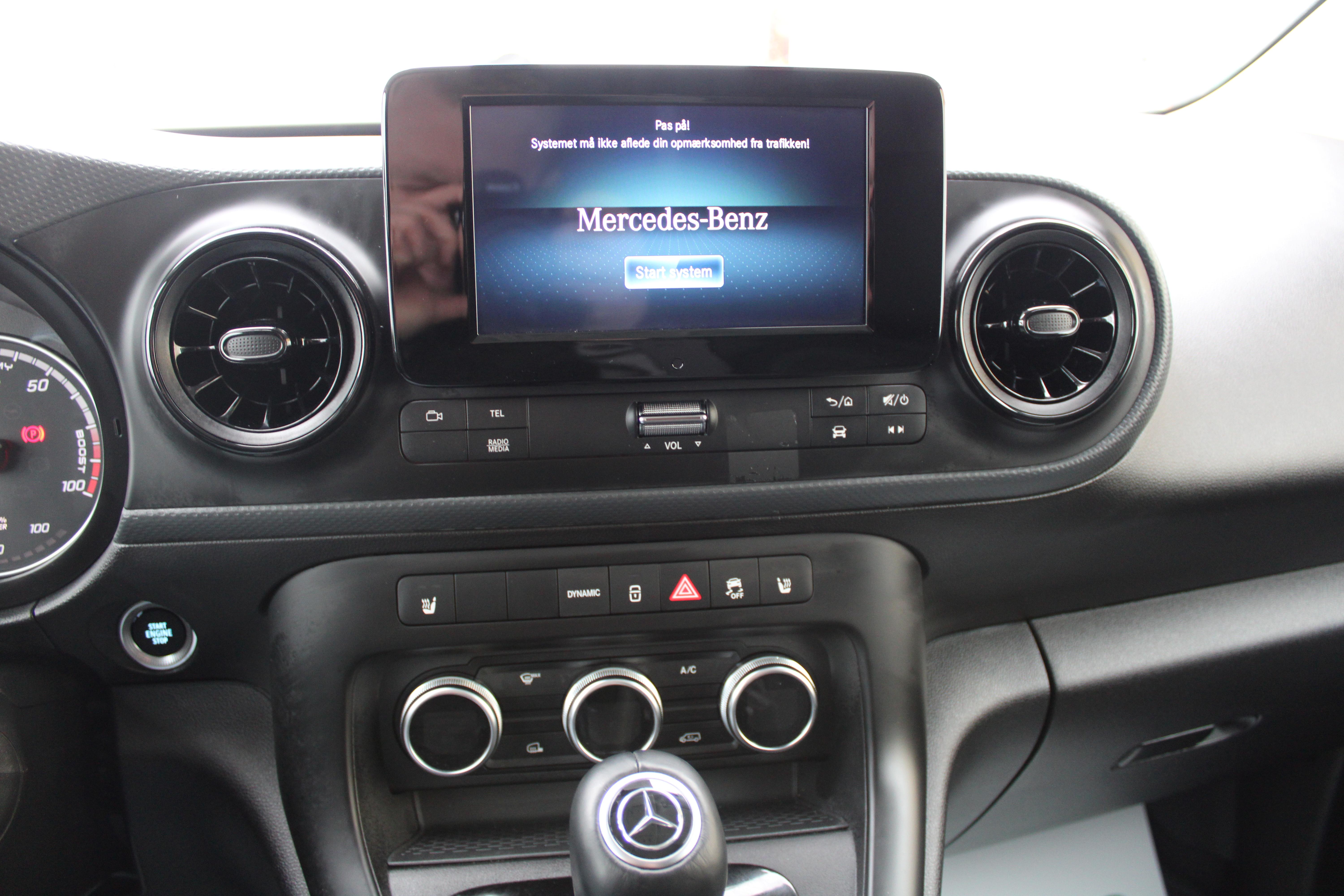 automatgear, fjernb. centrallås, el-ruder, el-sidespejle m/varme, abs, esp, airbag, servo, infocenter, fartpilot, udv. temp. måler, automatisk start/stop, attention assist, dynamic select, kørselshjælp, elektrisk parkeringsbremse, højdejust. rat, ratbetjent telefon, multifunktionsrat, radio, usb-c tilslutning, bluetooth, android auto, apple carplay, bakkamera, 2 zone klima, højdejust. førersæde, 2 sæder for, sædevarme, kopholder, armlæn, 12V strømudtag, 1 hylde over fører, 180° sidehængslede bagdøre, skydedør i højre side, beklædt varerum, surringskroge i varerum, højt monteret stoplys,